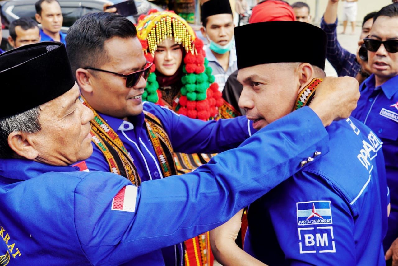 Prosesi adat penyambutan Ketua Demokrat Aceh dan rombongan diawali dengan pengalungan Slempang khas Alas “Sepakat Segenep” yang memiliki makna Satu Kata, Satu Pemahaman.