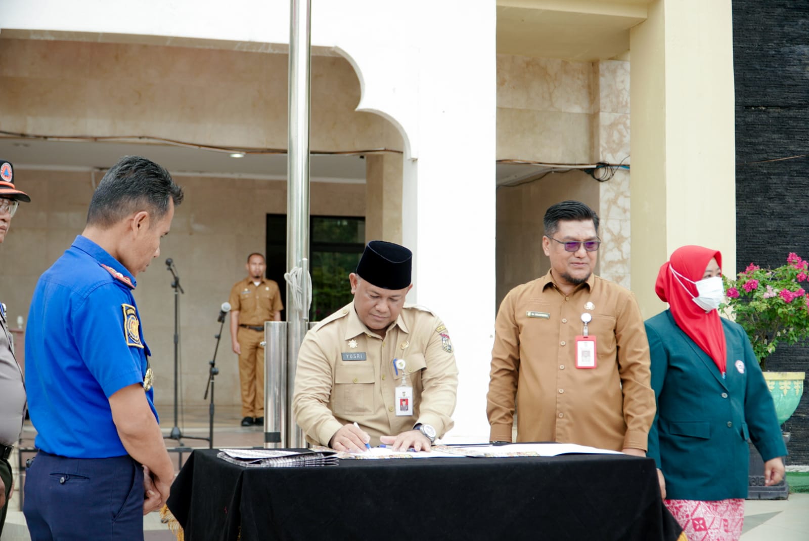 Puncak peringatan Hari Kesehatan Nasional Ke-58 digelar Apel Gabungan, Sekda Kampar Serahkan Berbagai Hadiah Dan Tandatangani MoU
