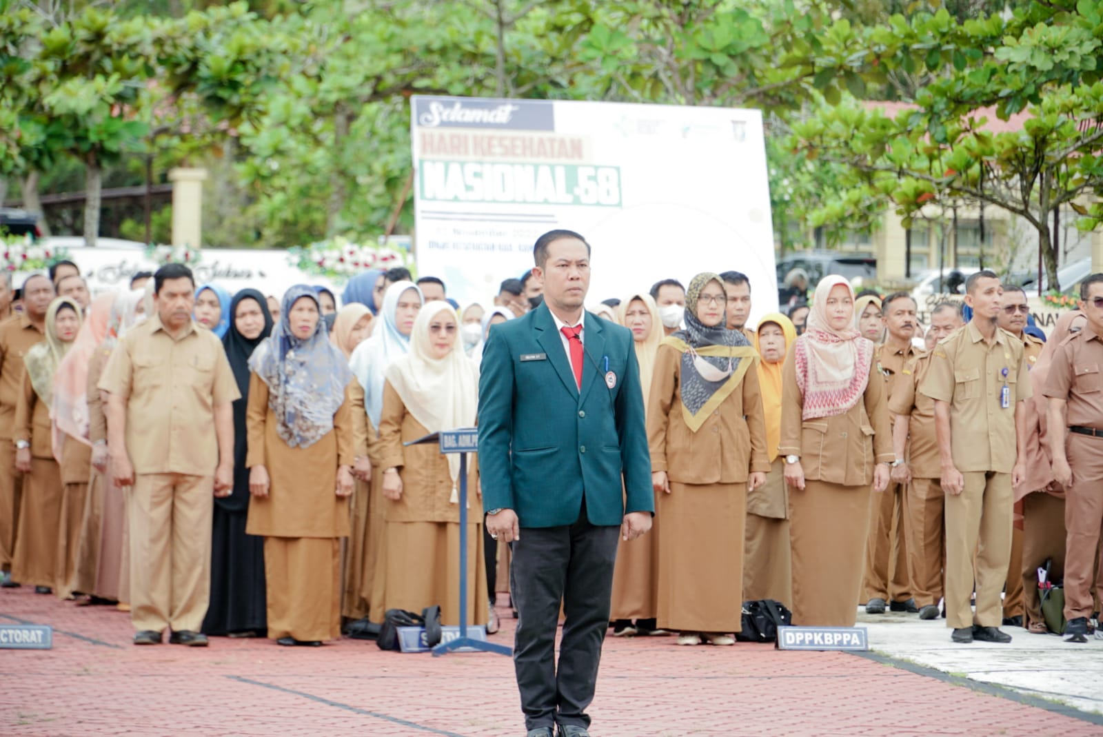 Bangkinang – Dalam rangka Hari Kesehatan Nasional (HKN) Ke-58 tahun 2022, Pj Bupati Kampar Dr. H. Kamsol, MM yang diwakili Oleh Sekda Kampar Drs. H. Yusri, M.Si Pimpin Apel gabungan, yang diselenggarakan di Lapangan Apel Kantor Bupati Kampar, Senin (14/11/2022).