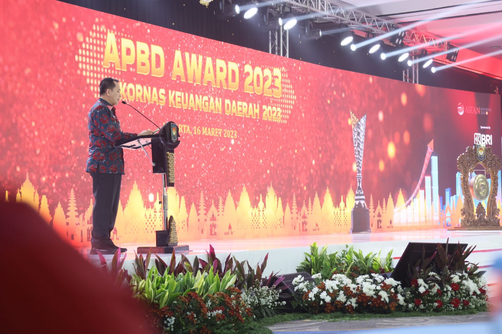 Jakarta – Menteri Dalam Negeri (Mendagri) Muhammad Tito Karnavian memberikan penghargaan APBD Award kepada kepala daerah dengan realisasi APBD tertinggi. Penghargaan itu diberikan pada acara APBD Award 2023 dan Rapat Koordinasi Nasional (Rakornas) Keuangan Daerah Tahun 2023 di Mercure Convention Centre (MCC) Ancol Jakarta, Kamis (16/3/2023).