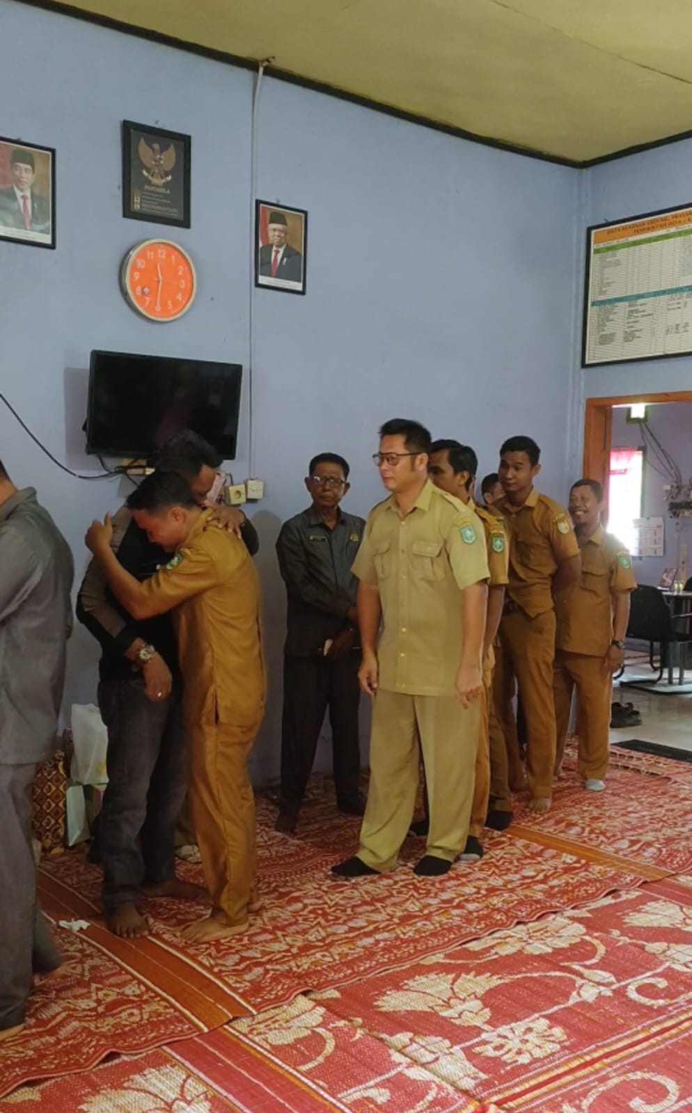 Pemandangan mengharukan pada saat berlangsungnya acara perpisahan. Suasana pamitan atau perpisahan kepala desa diwarnai isak tangis dan rasa haru aparatur desa , masyarakat beserta para tamu undangan yang hadir pada acara itu.semua tampak larut dalam kesedihan, Seolah-olah tak ingin saling berpisah. Suasana tersebut benar- benar dirasakan berlangsung dengan khidmat, Meski tak banyak kata yang terucap, Namun tatapan satu sama lain tampak berkaca-kaca seolah melukiskan kalimat yang amat berat untuk diucapkan.