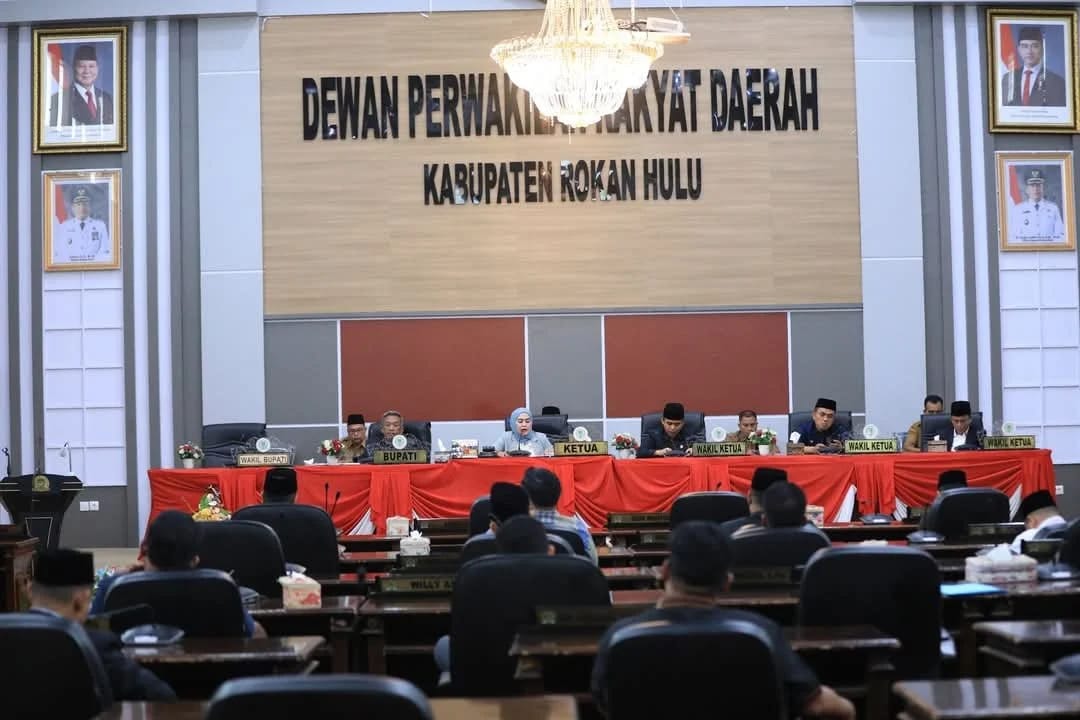 Rapat Paripurna Penyampaian LKPJ Tahun 2024 dan Ranperda Perusahaan Perseroan Daerah Bank Perekonomian Rakyat Rokan Hulu