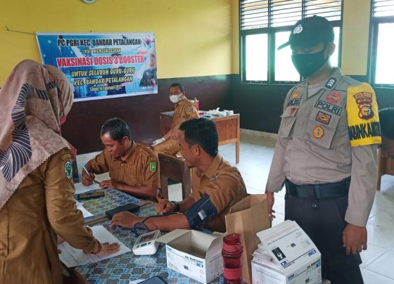 Pelalawan – Bhabinkamtibmas Kelurahan Rawang Empat Kecamatan Bandar Petalangan, Brigadir Arlis Saputra lakukan pengawalan giat Vaksinasi Covid-19 di SDN 002…